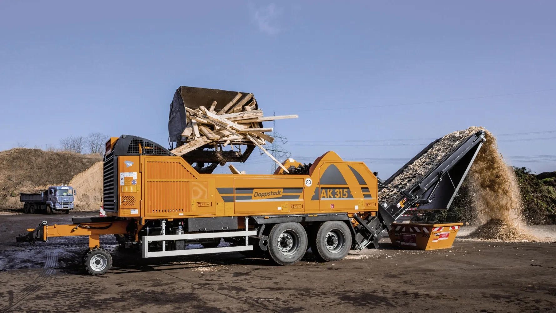 The AK 315 can be used flexibly and universally. It’s equally suitable for shredding waste wood, wooden pallets, green waste, organic waste, tree stumps and root wood and for finely shredding solid recovered fuels. The heavy, two-row flail drum can be fitted with different flail tips to suit different materials and applications, while the optional fine shredding baskets in mesh sizes from 30 mm to 320 mm can be used to create different product formats.